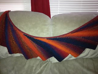And I finished another Zauberball scarf. The pattern is called Wingspan